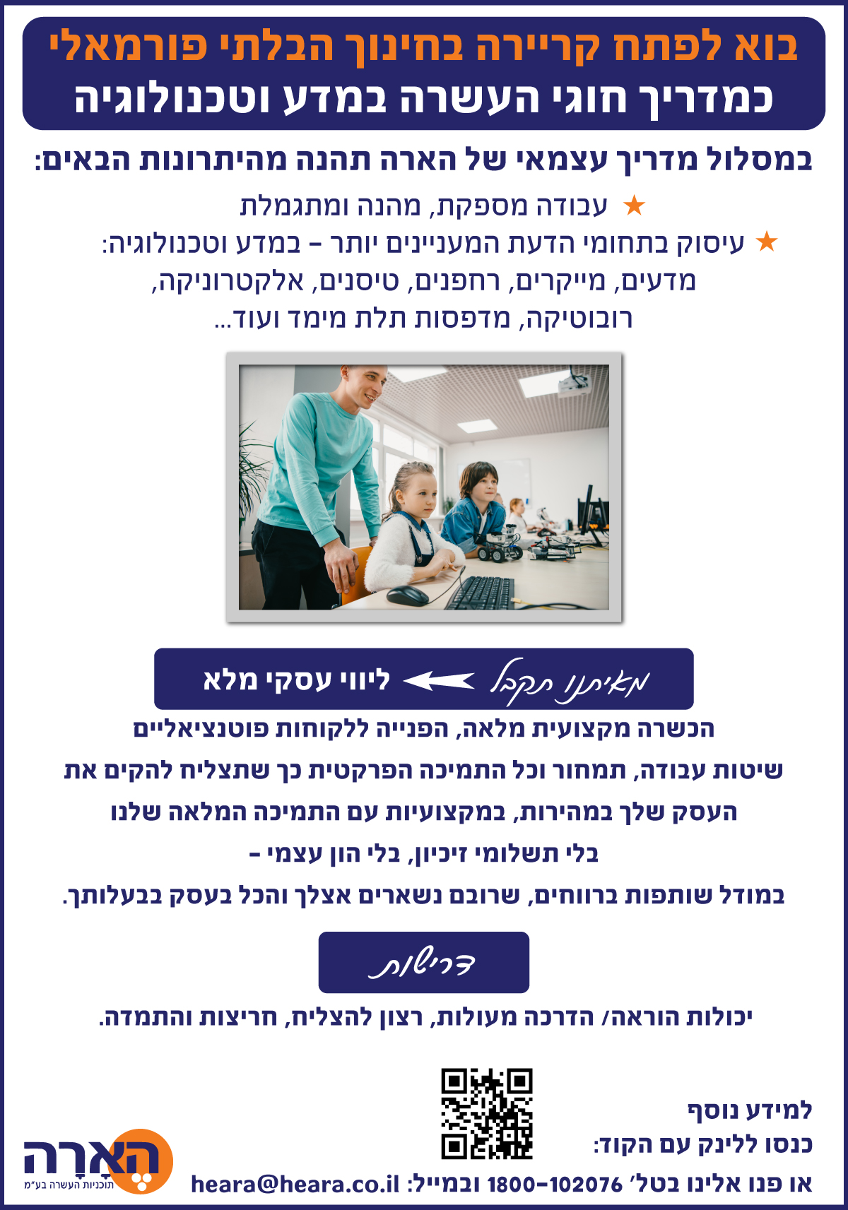 אם מעניינת אותך קריירה בתחום החינוך המדעי טכנולוגי, בחינוך הבלתי פורמלי, ואתה מדריך מהמעולים שיש, הארה רוצה לרוץ אתך למרחקים ארוכים, ומציע לך לעבוד עמה במסגרת “מדריך עצמאי”.