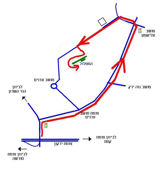 נכנסים בצומת אלישמע להוד השרון (צפונה). מגיעים לשלט מאיר עיניים  “הוד השרון” בשלט פונים שמאלה לכיוון מכון הטיהור של הוד השרון.